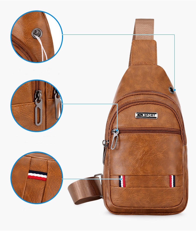 WTB030 New Fashion Men Business Chest Bags PU Leather Casual Crossbody Chest Shoulder Bag Outdoor Travel Sling Bags for Men